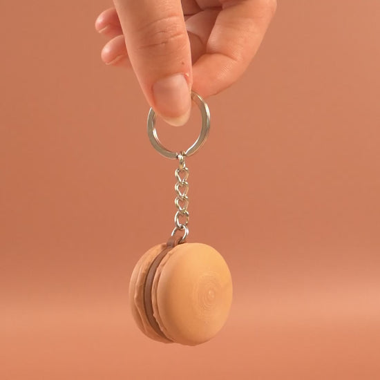 Ajoutez une touche de fantaisie et de gourmandise à votre quotidien avec ce Porte-clé Macaron chocolat !