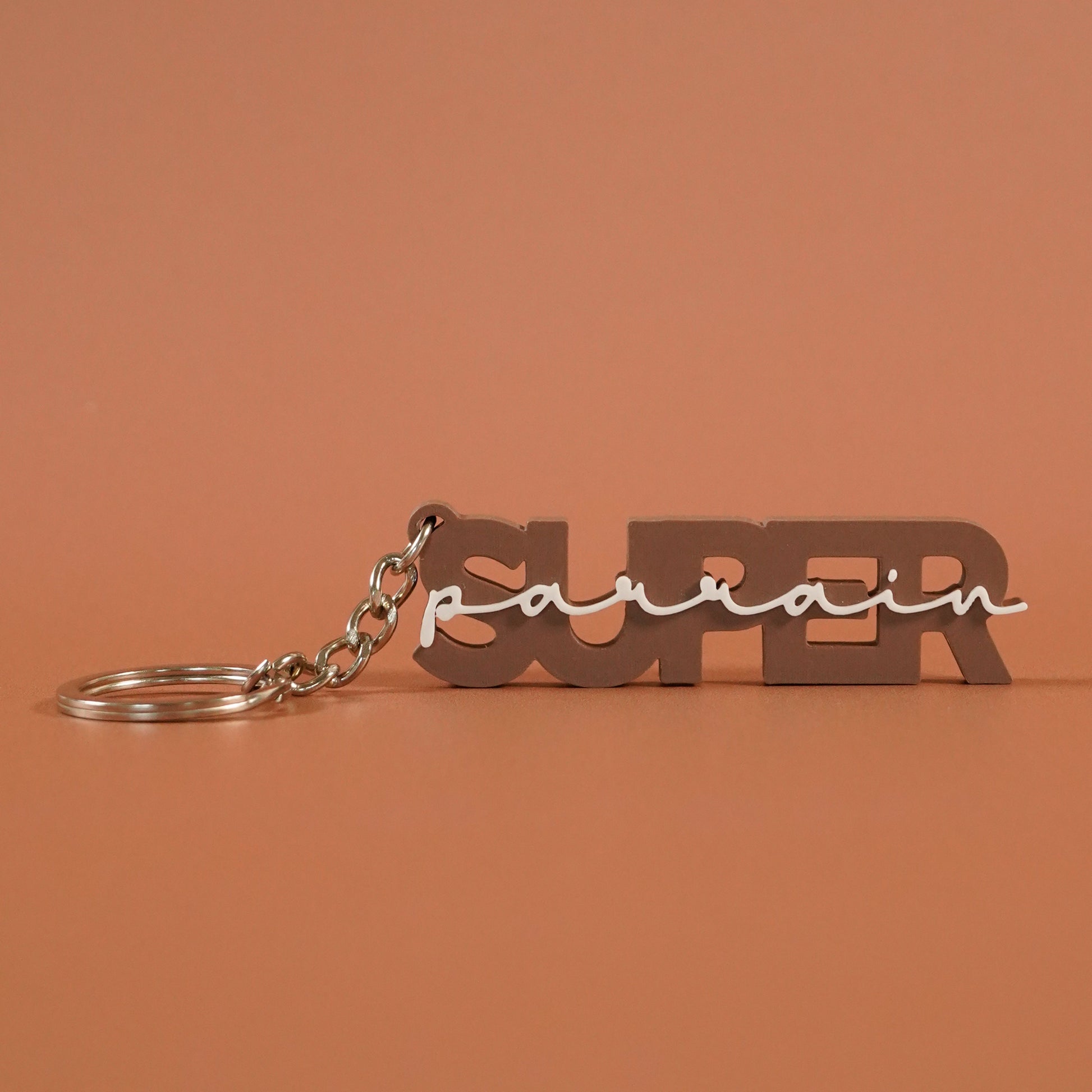 Ce porte-clé "Super parrain" est le cadeau idéal pour lui rappeler chaque jour combien il compte pour vous. Simple, pratique et plein de tendresse, il accompagnera ses clés, son sac ou sa voiture tout en lui réchauffant le cœur.