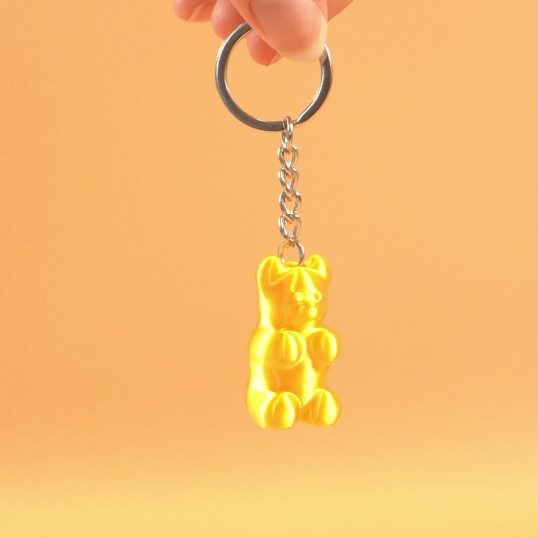 Ajoutez une touche de fantaisie et de gourmandise à votre quotidien avec ce Porte-clé Bonbon ourson doré !